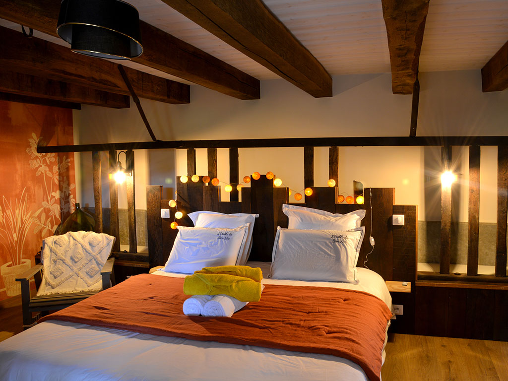 Plongez dans un cocon de bien-être au cœur d’un lieu chargé d’authenticité. La chambre, aménagée dans l’ancienne étable de la ferme familiale, conserve son âme d’antan avec le cornadis et l’auge d’origine où se nourrissaient les vaches de Raymond jusqu’en 1983.